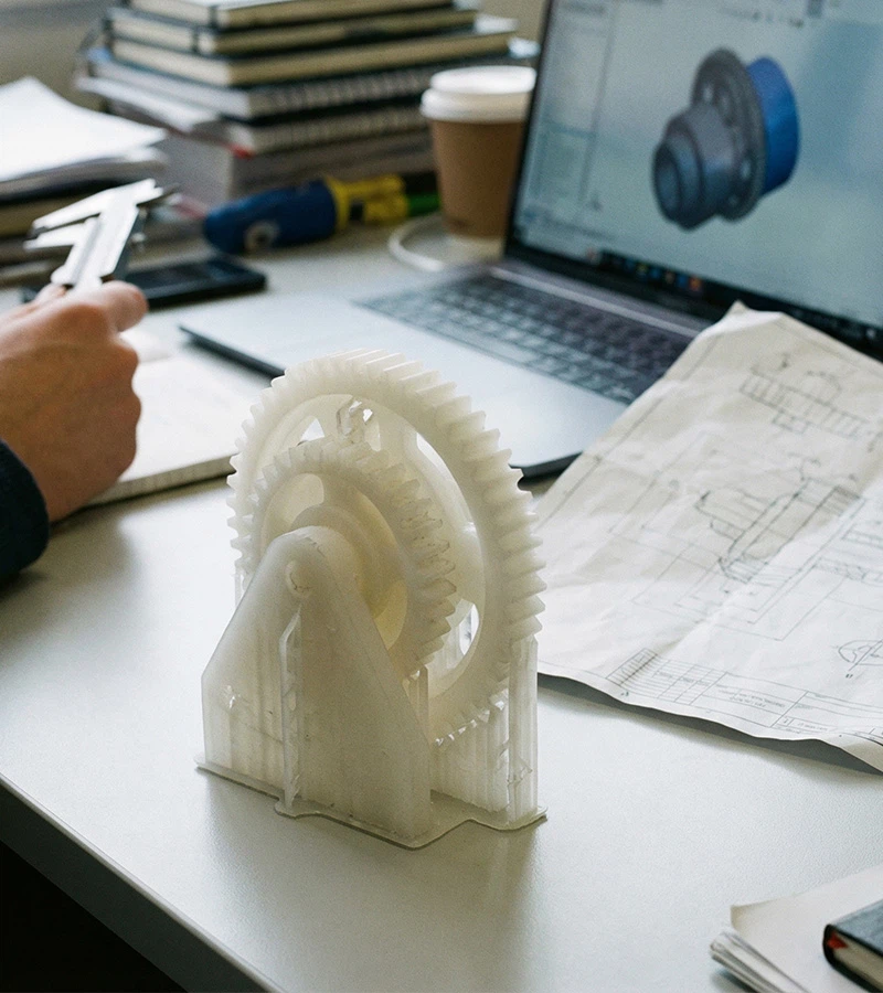 Industrielle SLA-Systeme drucken komplexe Geometrien innerhalb von Stunden. Am Morgen liegen fertige Modelle vor, die sich sofort testen lassen. Mehrere Designiterationen am selben Tag werden zum Standard.